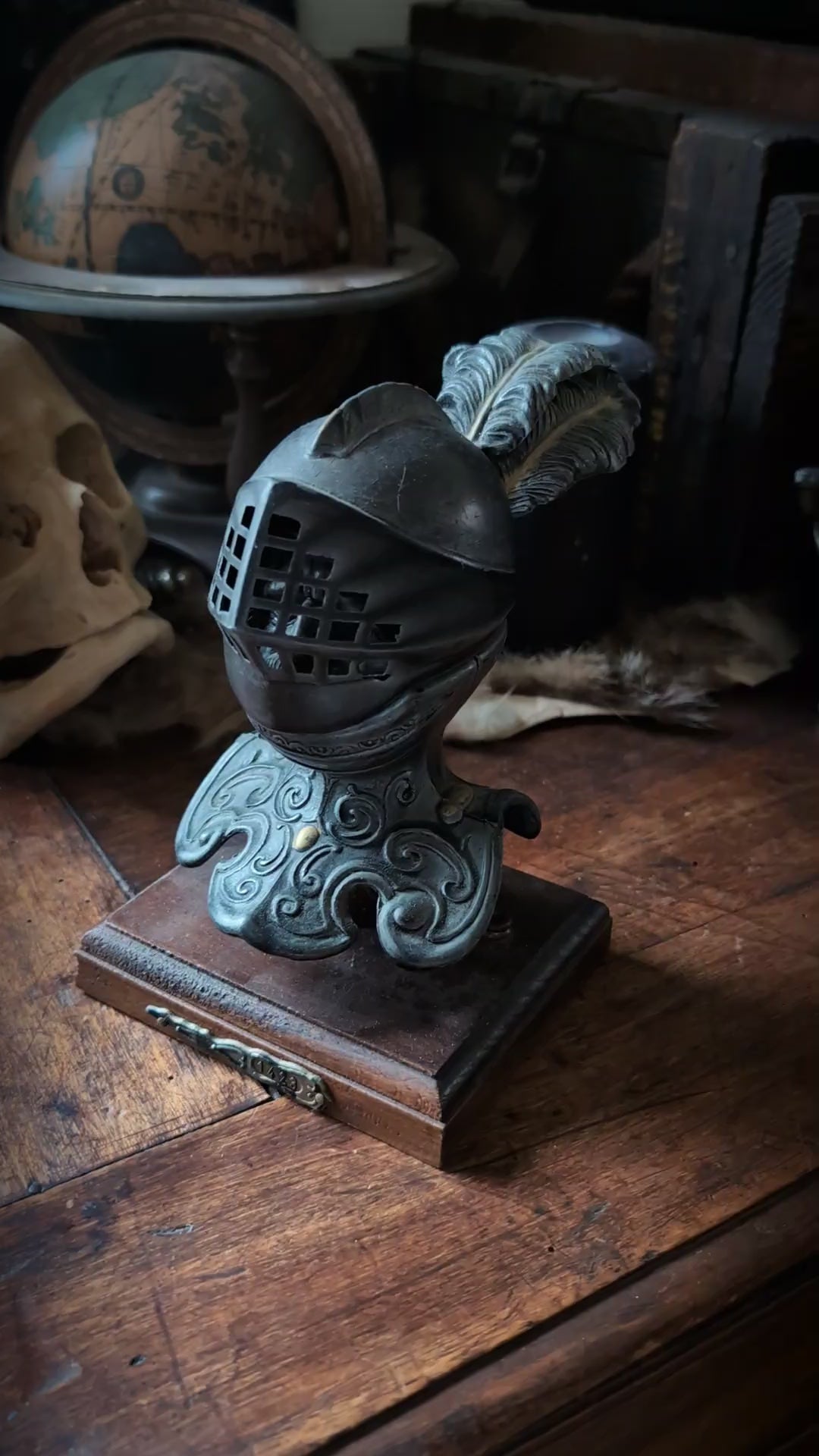 Antique knight inkwell (made of regulus) on base